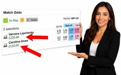 During a match, the players’ prices on Betfair change after every point. When a player wins a point, their price drops.
